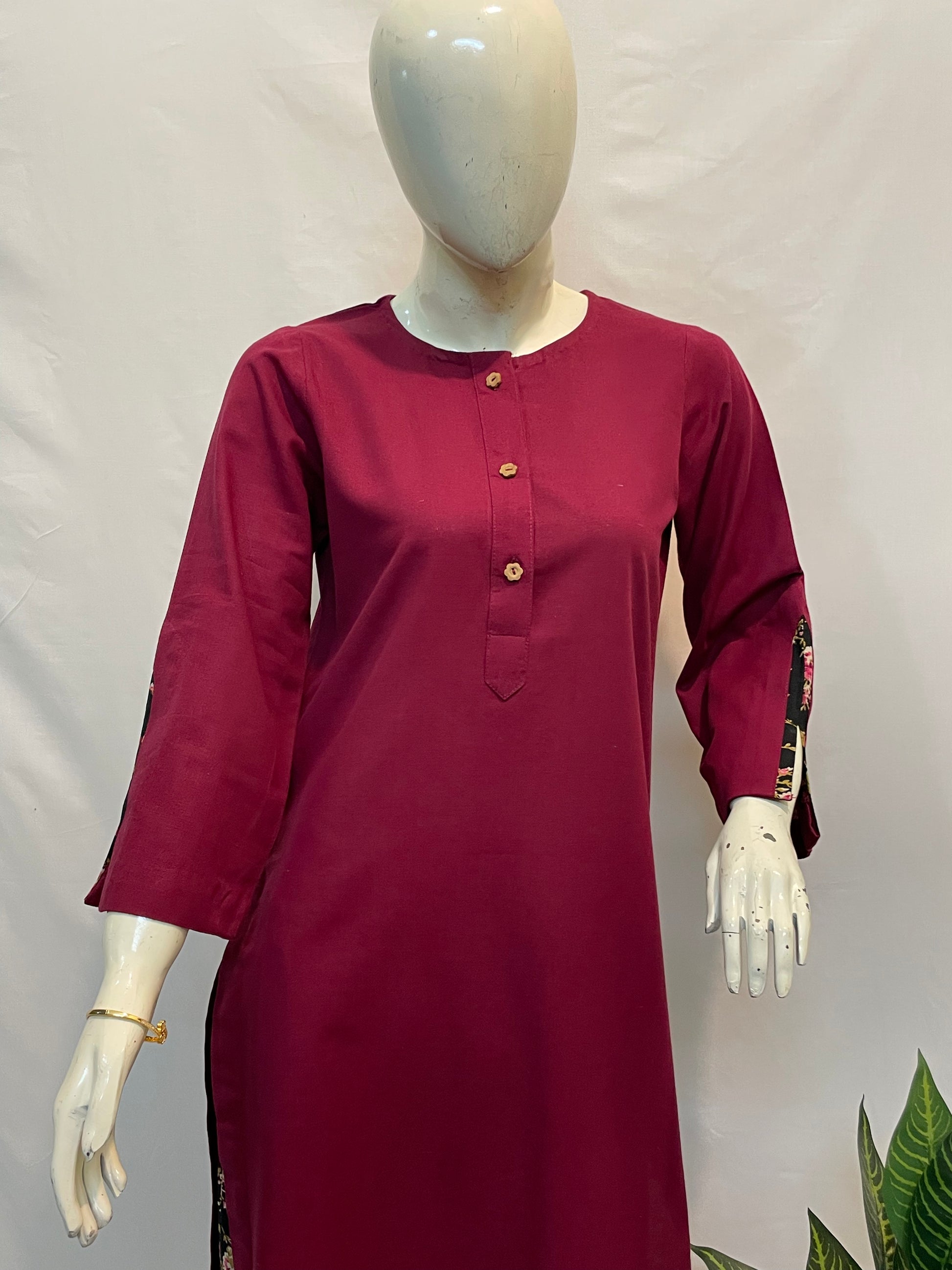 *Solid long shirt with front button detail